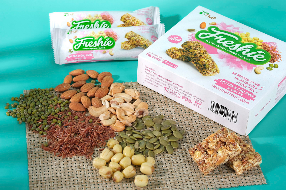 Thanh Hạt Dinh Dưỡng Freshie của Tâm Minh Foods mang đến nguồn năng lượng tươi mới, khi ăn thanh Freshie bạn sẽ cảm thấy như được tiếp sức trẻ năng động, tự tin, sáng tạo để học tập, làm việc và trở thành “the best version” - phiên bản tốt nhất của chính mình.